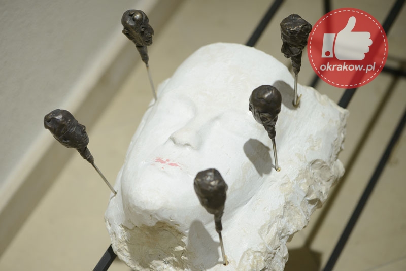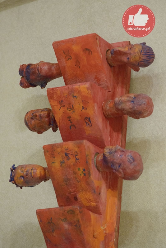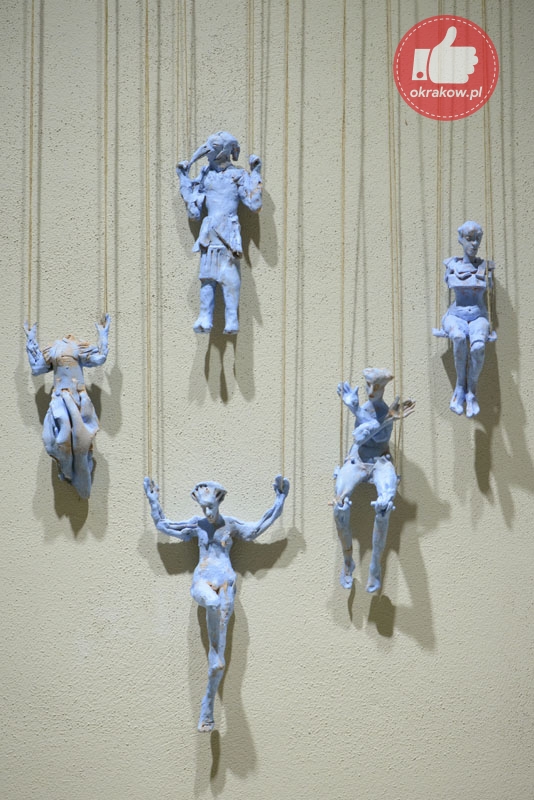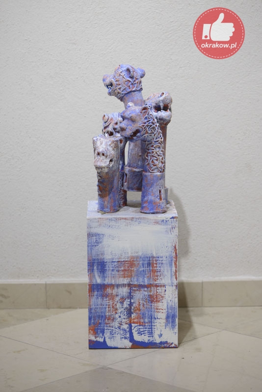 „Prace są opowieścią o przemijaniu dla której inspiracją stały się rzeźbione drewniane posągi Kigango , wznoszone ku pamięci zmarłych przez ludy Mijikenda zamieszkujące płd.-wsch. wybrzeże Kenii. Vigango są wertykalnymi stylizowanymi palami wyrastającymi prosto z ziemi, które swoją abstrakcyjną formą mogą, ale nie muszą nawiązywać do ludzkiej postaci. Ich rolą nie jest zaznaczenie miejsca pochówku, raczej stworzenie nowego ‘ciała’ dla duszy zmarłego. Te drewniane ciała dla duszy mają określoną żywotność, są stawiane w momencie, gdy pamięć o zmarłym nadal jest żywa. Wraz z mijającym czasem i niknącą pamięcią o osobie, która odeszła przestaje się o nie dbać pozwalając na to by drewno zamieszkiwane przez duszę zmarłego powoli niszczało. Taka forma upamiętnienia zmarłych od dawna mnie fascynuje. W dziele Broken columns zapożyczam formę Kigango do tego by opowiedzieć o bliskich mi osobach, które odeszły. W odróżnieniu od prototypu nie posługuję się drewnem, ale gliną. Mimo wszystko dla mnie pamięć wymaga trwałych form. Wystawa obejmuje także moje starsze prace, które również wpisują się w zajmującą mnie aktualnie tematykę przemijania….”